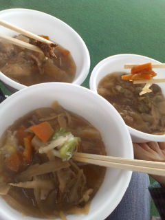 高畠ワイナリーの屋外の屋台で食べた牛煮込み。うますぎる。
