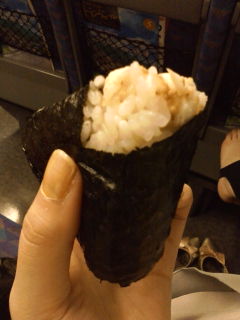 帰りの新幹線で鯛飯のおにぎりを食べました