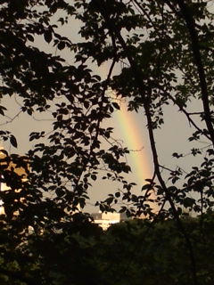 何かと思ったら虹でした!夕方のいい感じの空色に、くっきりと虹が!!